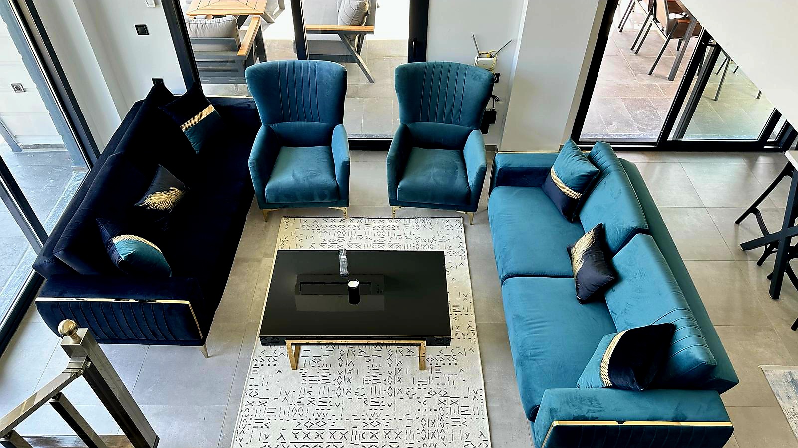 Salon takımları, 2 kanepe 2 berjerden oluşmakta kanepeler yatak olabilmektedir. Ayrıca salonlarda orta sehpa ve servis sehpası bulunmaktadır.